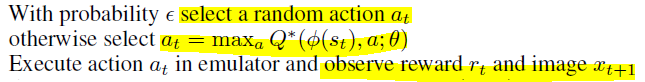 - experience replay를 수행한 후, agent는 greedy policy에 따라 action을 선택 및 수행