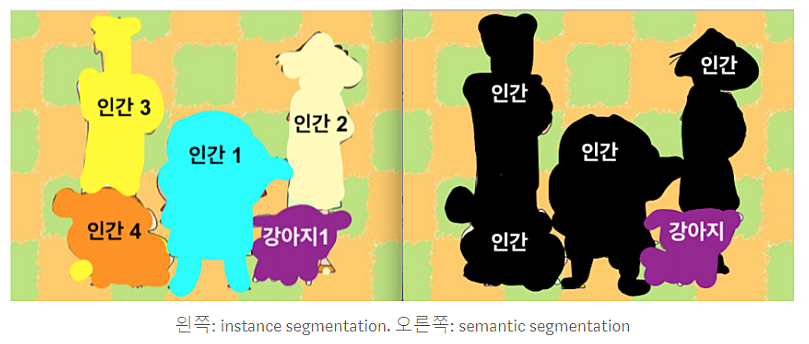 * instance segmentation은 같은 class여도 다른 객체로 인식 (사람 1, 사람 2 ...)