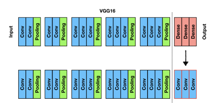 - 아래와 같이 일반적인 CNN 아키텍쳐의 마지막 FC층을 conv층으로 변경함으로써 이미지의 위치 정보를 보존