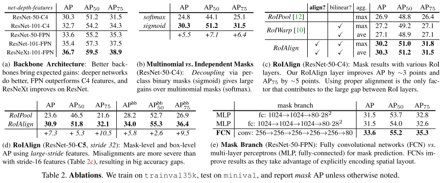 - Mask Branch에 MLP를 사용하는 것 보다 FCN을 사용하는 것이 성능이 더 좋았다 (e)