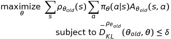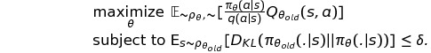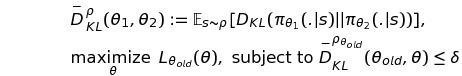 조금 더 큰 step size를 얻기 위해서, 해당 논문에서는 KL divergence를 이용해 penalty를 주는 방식이 아닌 아래와 같이 constraint로서 KL divergence를 이용해 trust region constraint를 구현해 주었다.
