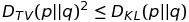 다음으로 total variation divergence 와 KL divergence 사이에는 아래와 같은 관계식이 성립한다.