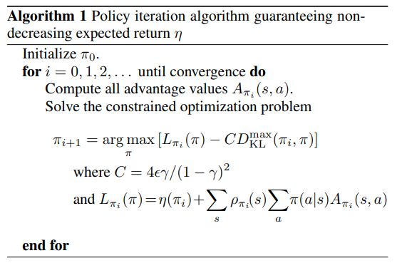 이 문제를 해결하기 위해 Kakade&Langford(2002)가 conservative policy interation 이라는 개념을 제시했다.