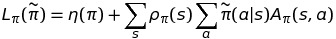 아래 식은 performance function $\eta$에 대한 local approximation 식이다. advantage policy $\overset{\sim}\pi$로부터 직접 sample을 얻어오는것이 어려우므로, 간접적으로 local policy $\pi$로부터 얻으려는 것이다.