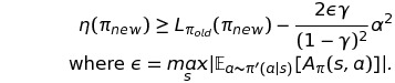 위 식은 충분히 작은 step으로 approximation이 증가하는 방향으로 움직이면, performance $\eta$ 역시 증가한다는 것을 나타낸다. 하지만 얼만큼의 big step까지 이를 보장하는지에 대한 guidance가 없다는 한계가 있다.