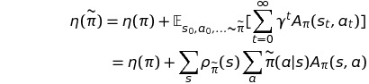 또한, policy $\pi$에 대해 advantage를 취한 policy를 $\overset{\sim}\pi$라 할 때, 시간에 따라 축적된 expected return은 다음과 같다.