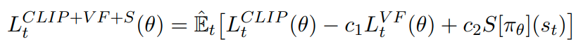 c1과 c2는 각각 loss의 비중을 결정하는 계수, L_VF는 value function의 squared-error loss, S는 entropy bonus이다.