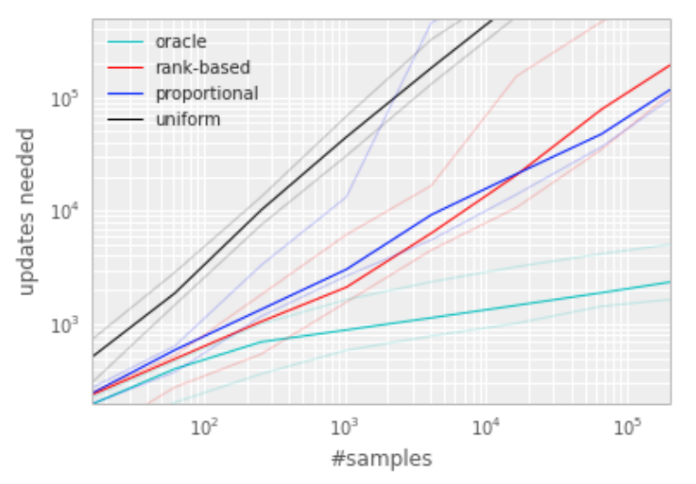 uniform과 oracle baseline, 그리고 'greedy TD-error prioritization' algorithm을 비교하였다.