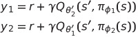 그 대신에 기존의 Double Q-learning에서의 방식이 아닌 actor($\pi_{\phi_1}, $\pi_{\phi_2}$)와 critic($Q_{\theta_1}, $Q_{\theta_2}$)에 대해 짝을 만들어 서로의 estimator를 이용해 업데이트하는 방법 역시 고려해 볼 수 있다.