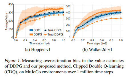 - Overestimation은 그동안 value-based 방법론에서 주요한 문제로 다루어져왔고, actor-critic방법역시 overestimation bias가 문제가 되고있다는 것을 보였다.