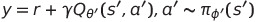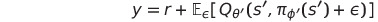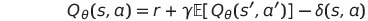large state space에 대해 Q value를 근사하기 위해 parameter $\theta$를 사용하며, objective $y$에 대해 업데이트 수식은 다음과 같다.