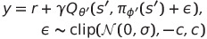 바로 target value를 구하기 직전의 next action에 random noise를 더해 input을 smoothing하는 방법으로 다음과 같이 구현 가능하다.